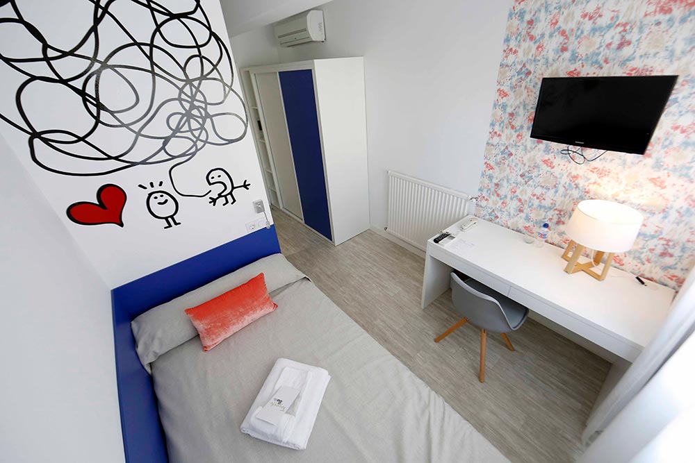 Todas nuestras habitaciones van a tener parte de los servicios y equipamiento comunes, sea cual sea el tipo que elijas, así podremos cumplir con nuestro compromiso de ofrecerte un servicio de calidad.